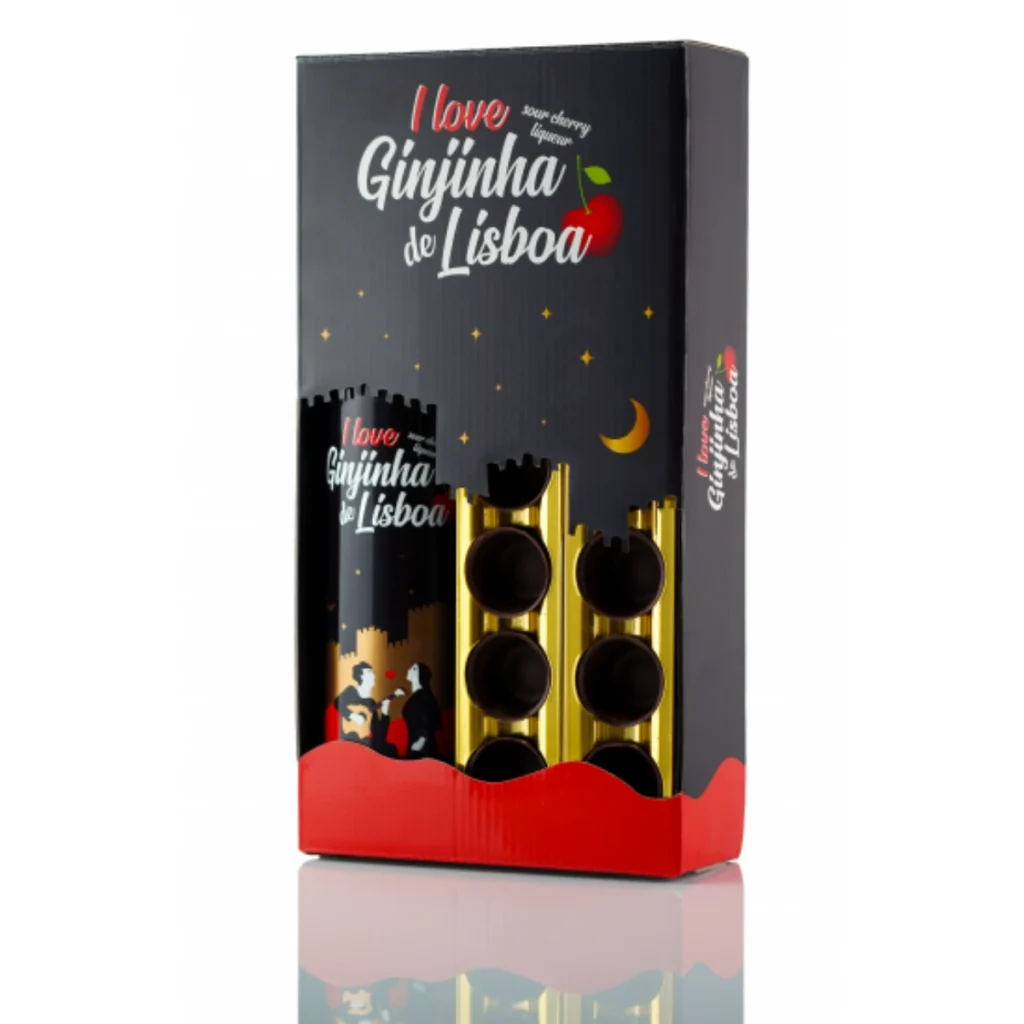 I Love Ginjinha de Lisboa – Botella con 12 Copas de Chocolate.