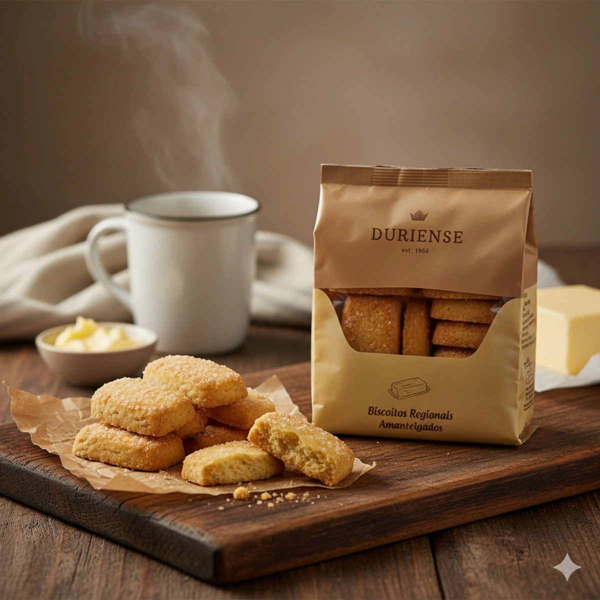 Descubre el «Mantecoso» de la Gama Regional de Duriense, la galleta que captura la esencia más pura de la repostería tradicional portuguesa. Esta galleta artesanal honra su nombre con un intenso y reconfortante sabor a mantequilla y una textura rústica e inconfundible. Elaborada con ingredientes simples y una receta casera, es el sabor de la nostalgia en cada bocado.