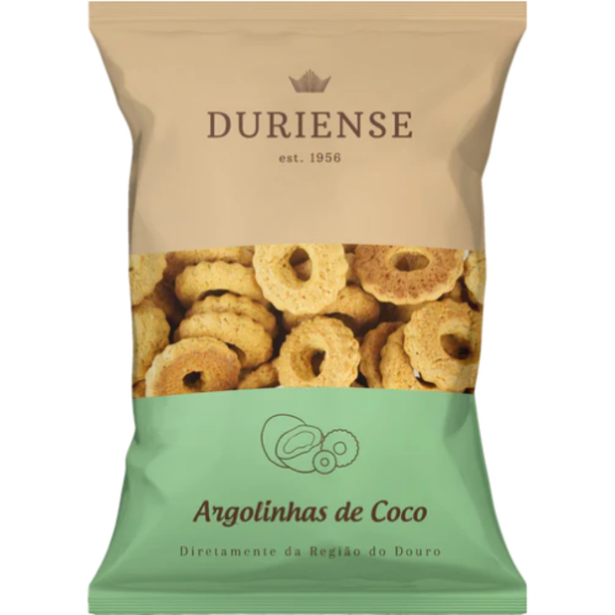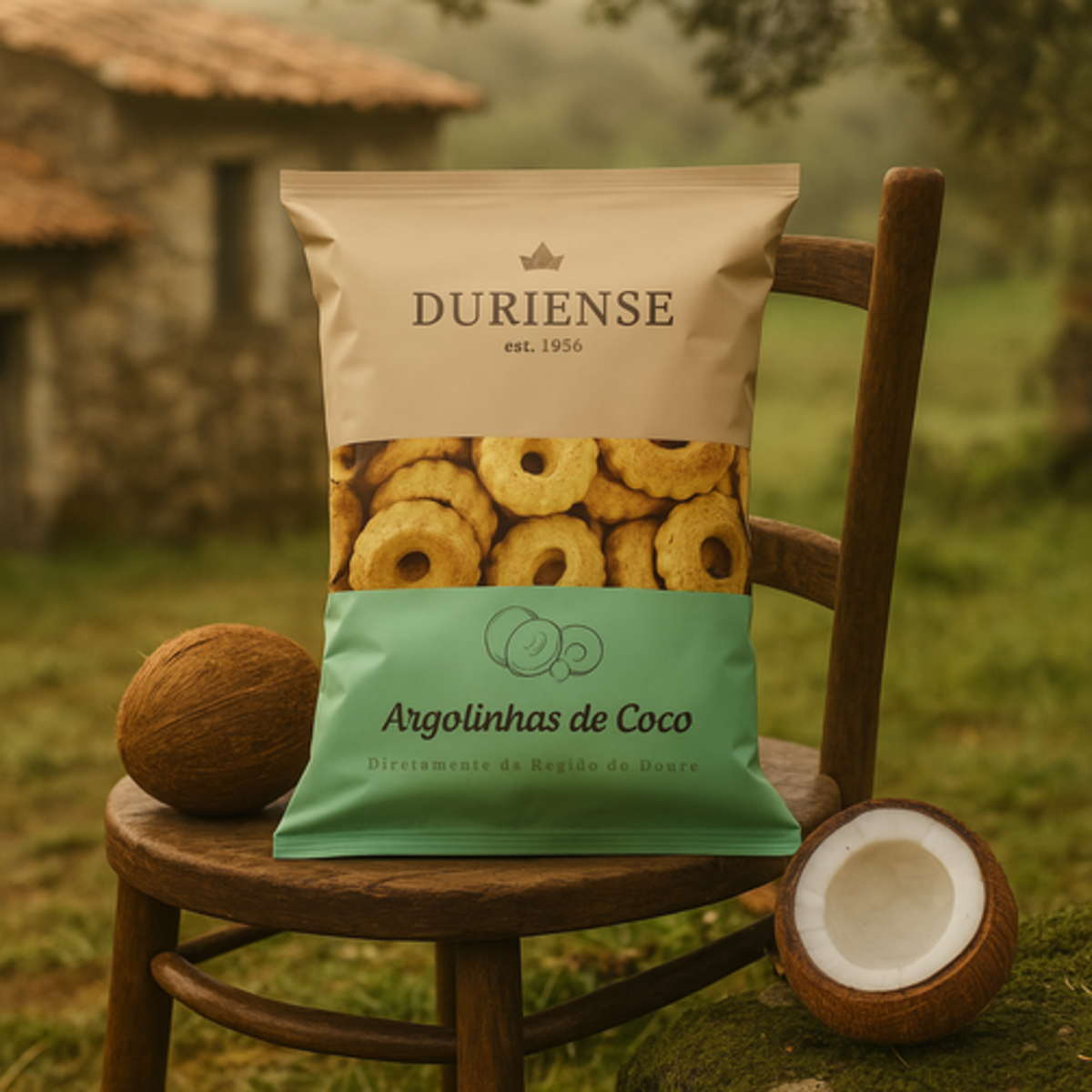 Descubre los «Anillos de Coco», uno de los dulces artesanales más queridos de la Gama Clásica de Duriense. Estos anillos no son una galleta, sino un bocado exquisito de repostería tradicional portuguesa. Elaboradas principalmente con coco rallado, azúcar y huevo, cada pieza es horneada a la perfección para lograr un exterior dorado y un interior increíblemente húmedo y tierno. Un capricho irresistible para los verdaderos amantes del coco.