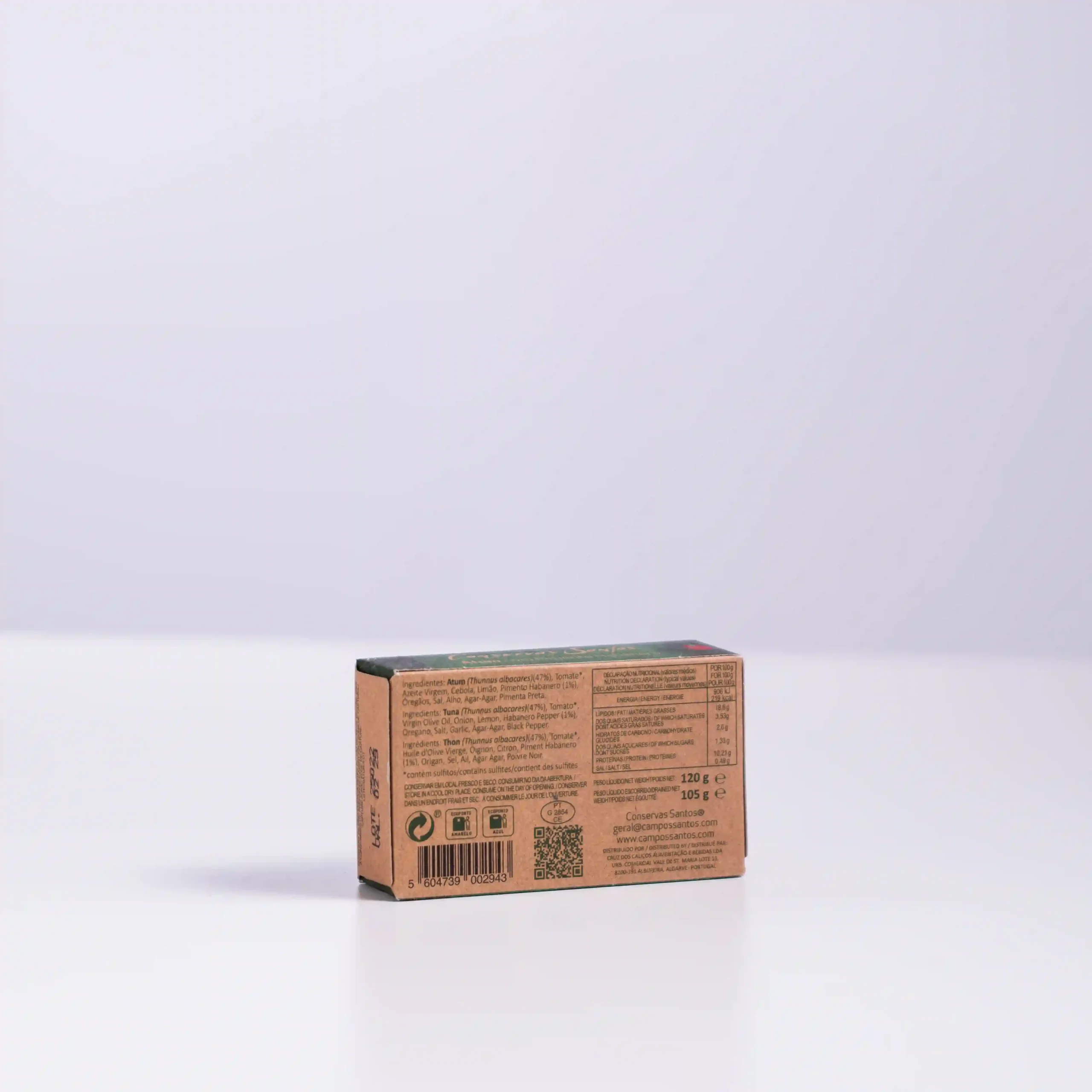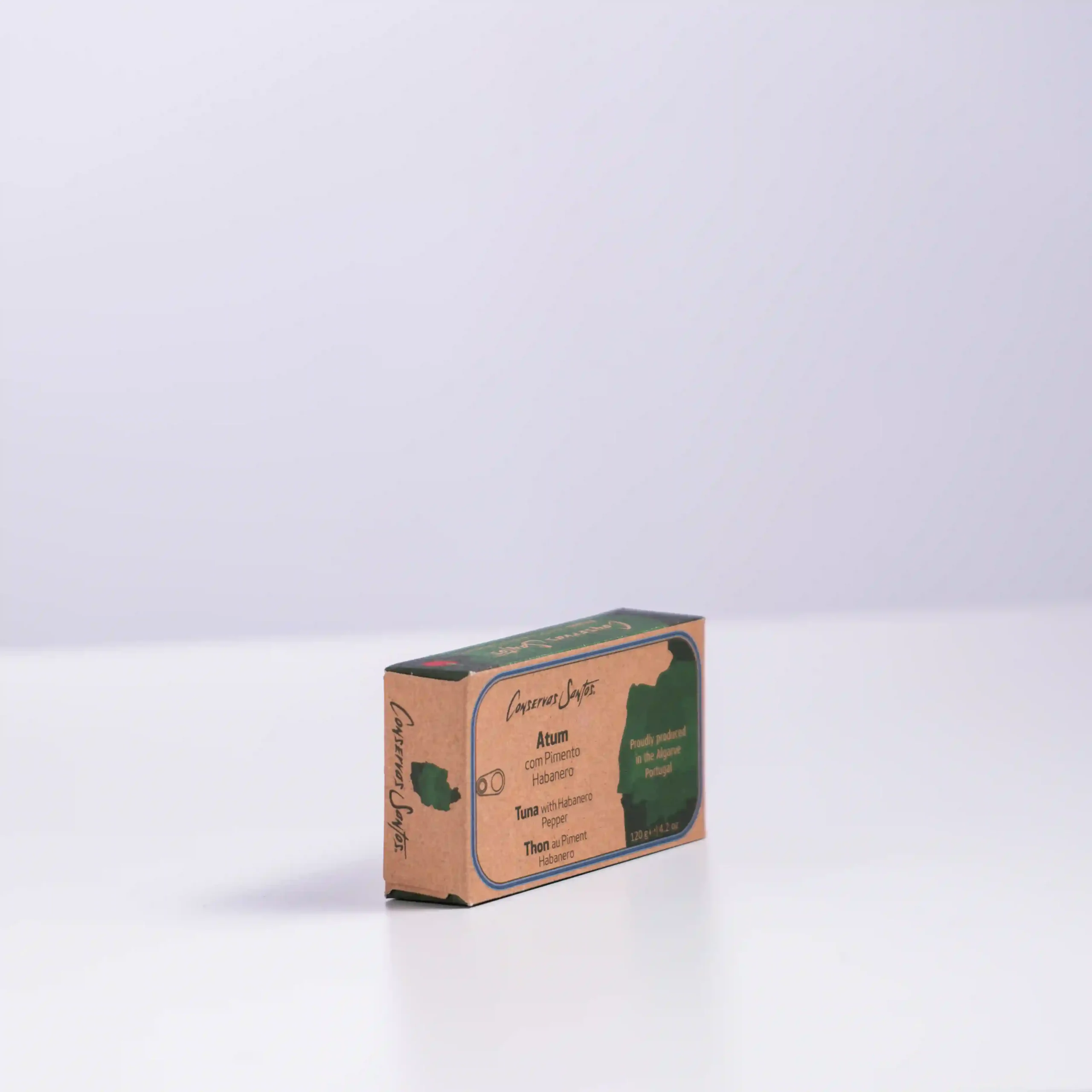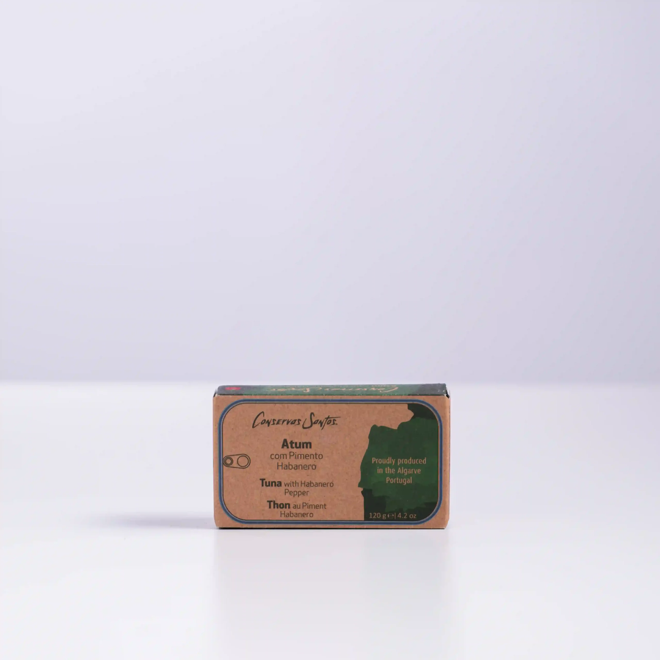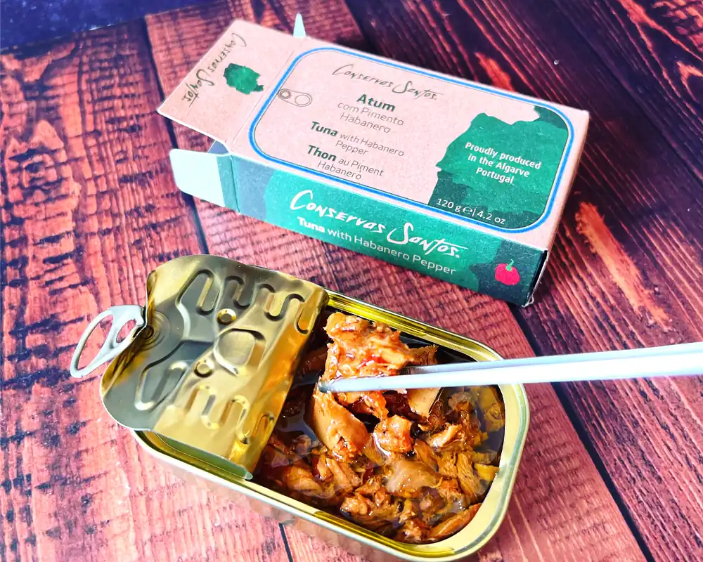 Campos Santos nos trae un exquisito atún del Atlántico, cuidadosamente preparado y conservado en aceite de oliva, con el toque ardiente y afrutado del pimiento habanero.