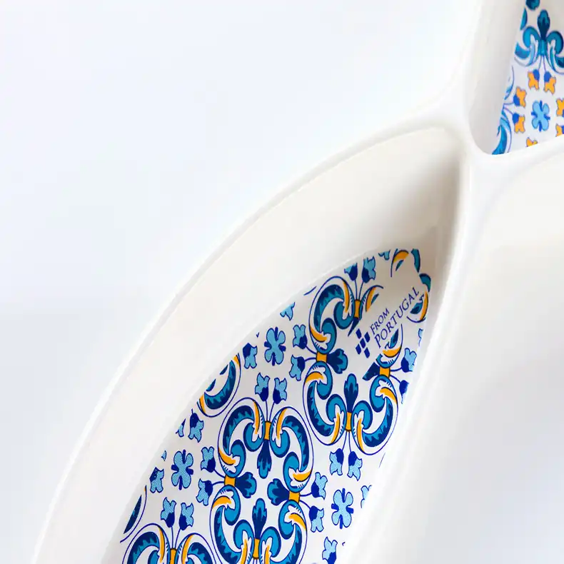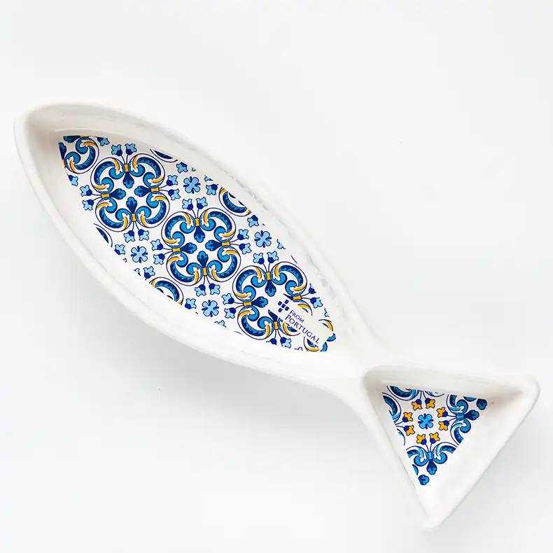 Esta es la pieza definitiva para los puristas. Si buscas una aceitunera que grite «Portugal» sin decir una palabra, es esta. Inspirada en la rica herencia de la azulejería lusa, esta sardina presenta un patrón floral clásico en el inconfundible azul cobalto sobre fondo blanco. Es un diseño que trasciende las modas, evocando las fachadas de Alfama y la brisa del Tajo. Más que un utensilio para aperitivos, es una pequeña obra de artesanía que trae a tu hogar la elegancia atemporal y la serenidad del estilo mediterráneo más auténtico.
