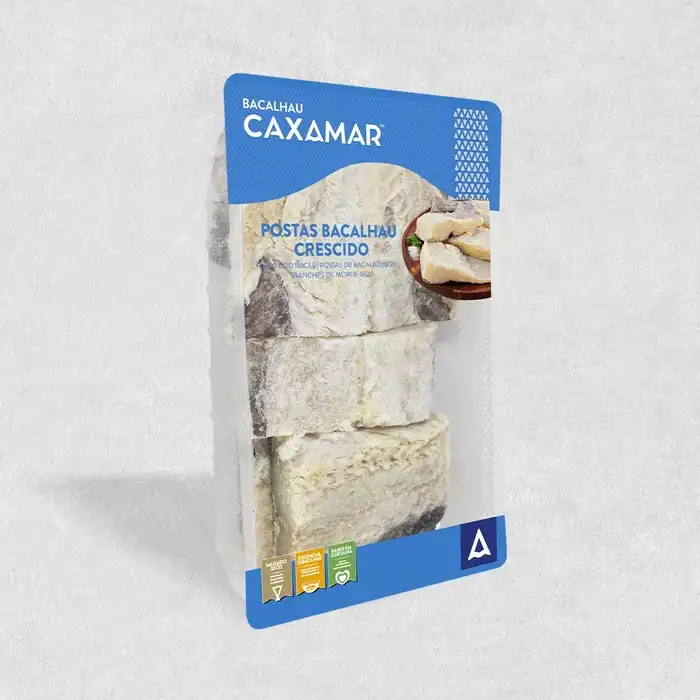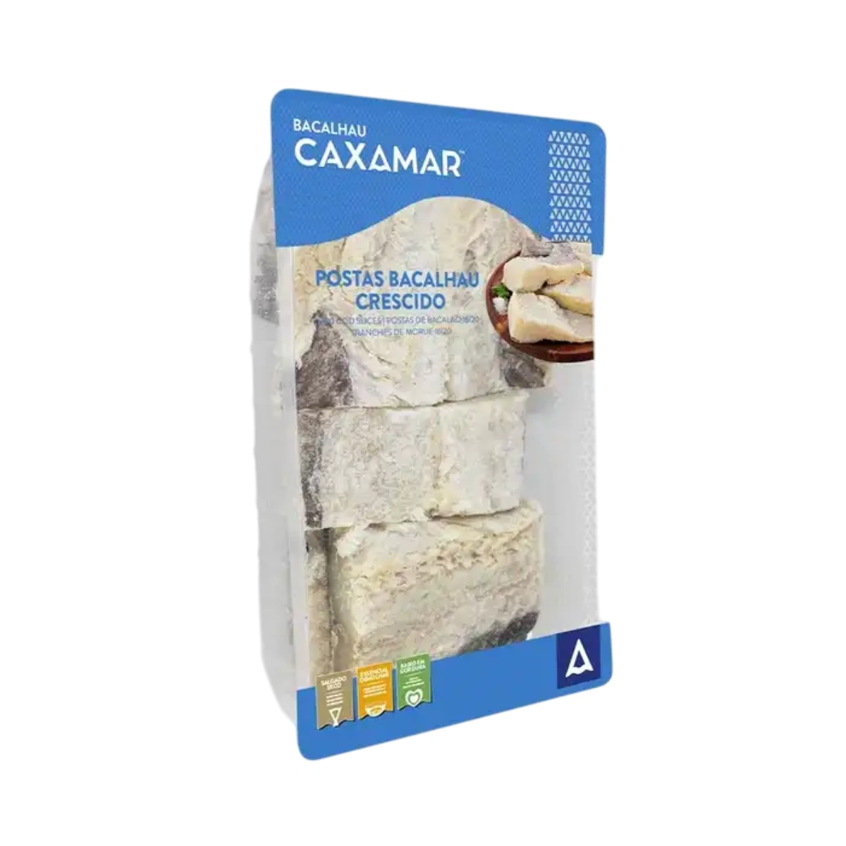 Caxamar eleva la experiencia del bacalao con sus Filetes de Bacalao Crescido. Esta clasificación, «Crescido», se reserva para piezas de Gadus morhua de un tamaño generoso, seleccionadas por su grosor y altura excepcionales. Capturado en las aguas gélidas del Atlántico Norte, cada lomo es tratado con la maestría de la curación tradicional portuguesa, un proceso lento que garantiza una textura y un sabor supremos. Es el corte de elección para la alta gastronomía lusa, una pieza noble que transforma cualquier comida en un banquete.