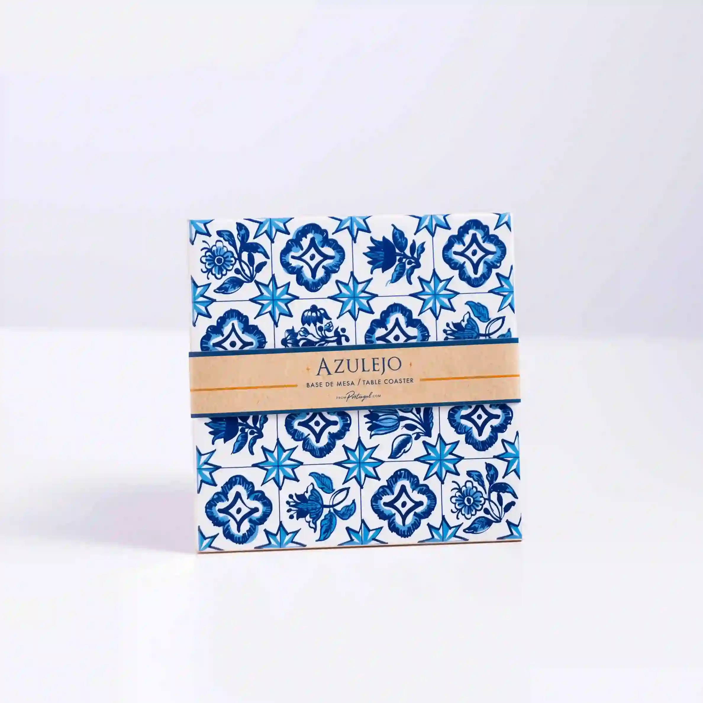 Base de mesa de cerámica con diseño inspirado en los azulejos tradicionales portugueses, en tonos azul y blanco. Su patrón geométrico de flores y rombos crea una sensación de frescura y armonía, evocando la arquitectura clásica de Lisboa y Porto. Ideal para proteger superficies o como elemento decorativo, combina funcionalidad y arte en una pieza atemporal de estilo mediterráneo.