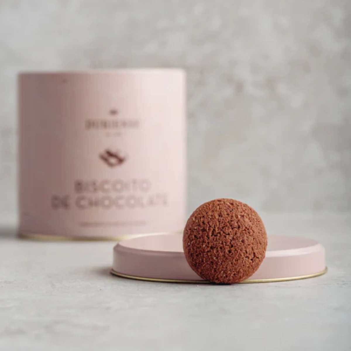 Esta galleta presenta un atractivo color marrón oscuro e intenso, característico del cacao de alta calidad. En nariz, es una delicia, con potentes aromas a chocolate negro y cacao tostado, que se equilibran perfectamente con las notas cálidas y lácteas de la mantequilla pura horneada. En boca, su textura es exquisitamente crujiente, seca y quebradiza (friável), deshaciéndose en el paladar. El sabor es de chocolate profundo y auténtico, menos dulce que las galletas comunes, con un ligero y elegante amargor del cacao que es perfectamente balanceado por la riqueza de la mantequilla.