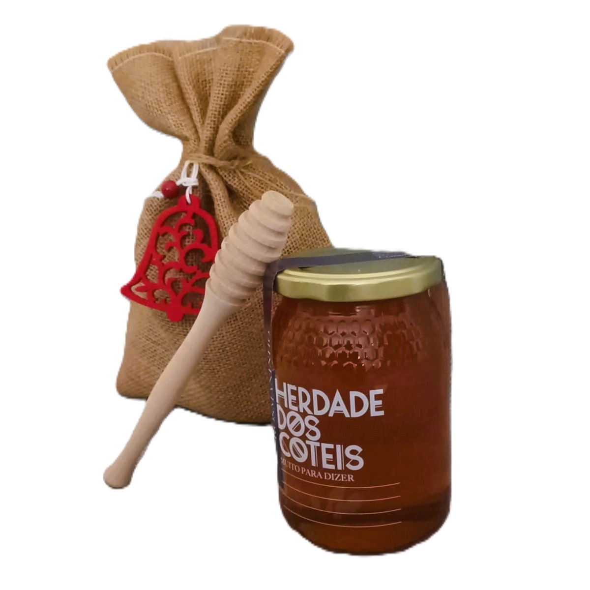 Incluye Bolsa 100% Yute y cuchara de miel de madera .