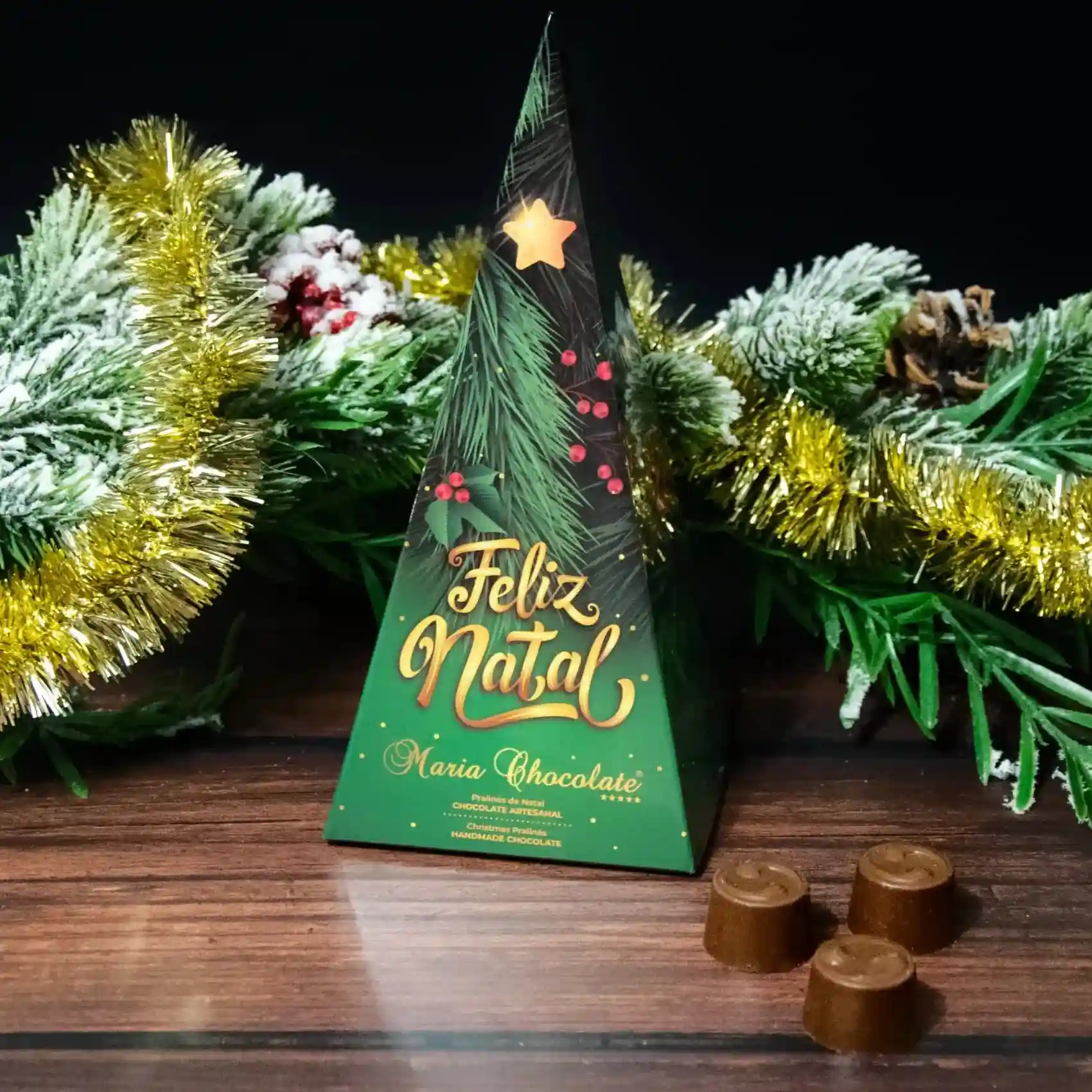Una presentación navideña con encanto tradicional. La Caja Cono Especial Navidad reúne un surtido de bombones artesanales dentro de un estuche cónico festivo, pensado para regalar, decorar y disfrutar con un aire clásico que nunca pasa de moda.