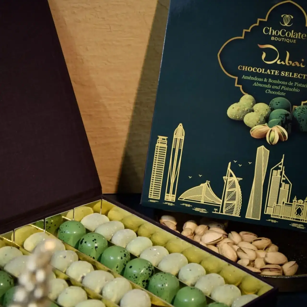 Producto: Dubai Chocolate Selection (Almendras y Bombones de Pistacho)