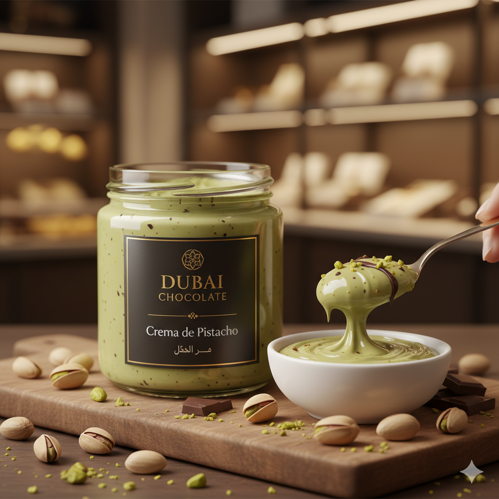 La experiencia es una deliciosa fusión de texturas: la suavidad del chocolate y la crema de pistacho contrasta con el sorprendente y satisfactorio crujido del kadayif, ofreciendo un sabor único que equilibra lo dulce y lo salado con notas de frutos secos.