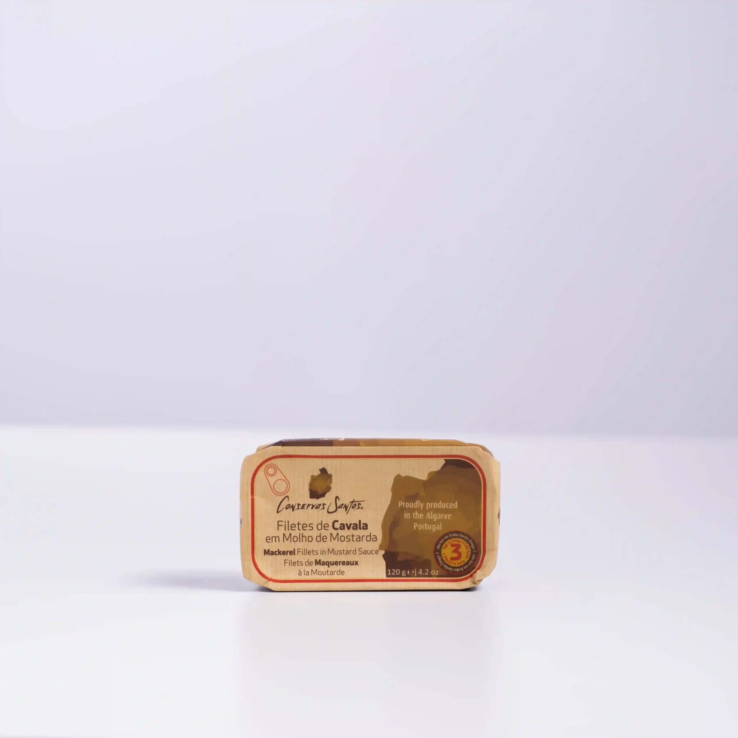 Campos Santos trae aquí una mezcla perfecta entre el mar y el sabor gourmet. Estos filetes de caballa se elaboran artesanalmente en el Algarve, Portugal, y se presentan bañados en una cremosa salsa de mostaza, que aporta un toque delicadamente picante y aromático al pescado.