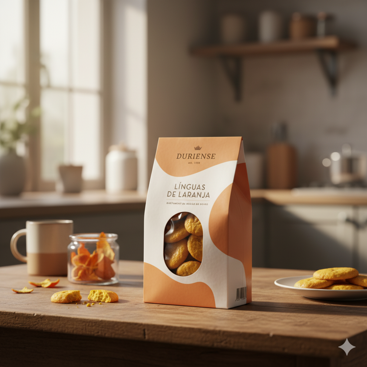 Descubre la versión premium de las «Lenguas de Naranja», perteneciente a la selecta «Gama Douro» de Duriense. Esta galleta artesanal eleva la receta clásica al utilizar mantequilla pura, que le confiere una textura y riqueza excepcionales. Su delicado sabor a naranja fresca y su fino y crujiente bocado la convierten en una delicia elegante para los paladares más refinados.