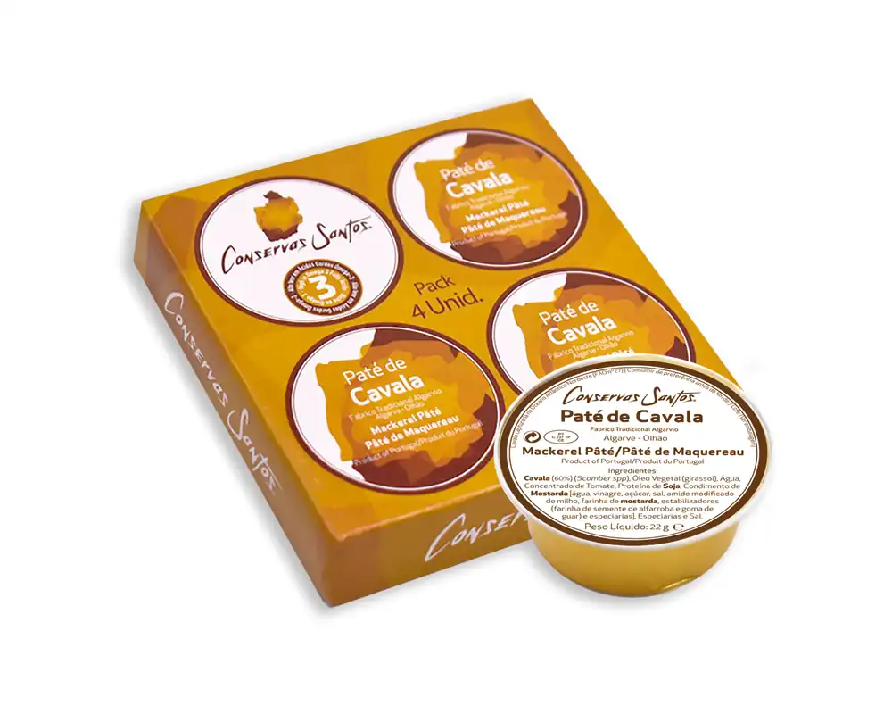 El paté incluye carne de caballa, aceite y condimentos (como tomate y especias).
