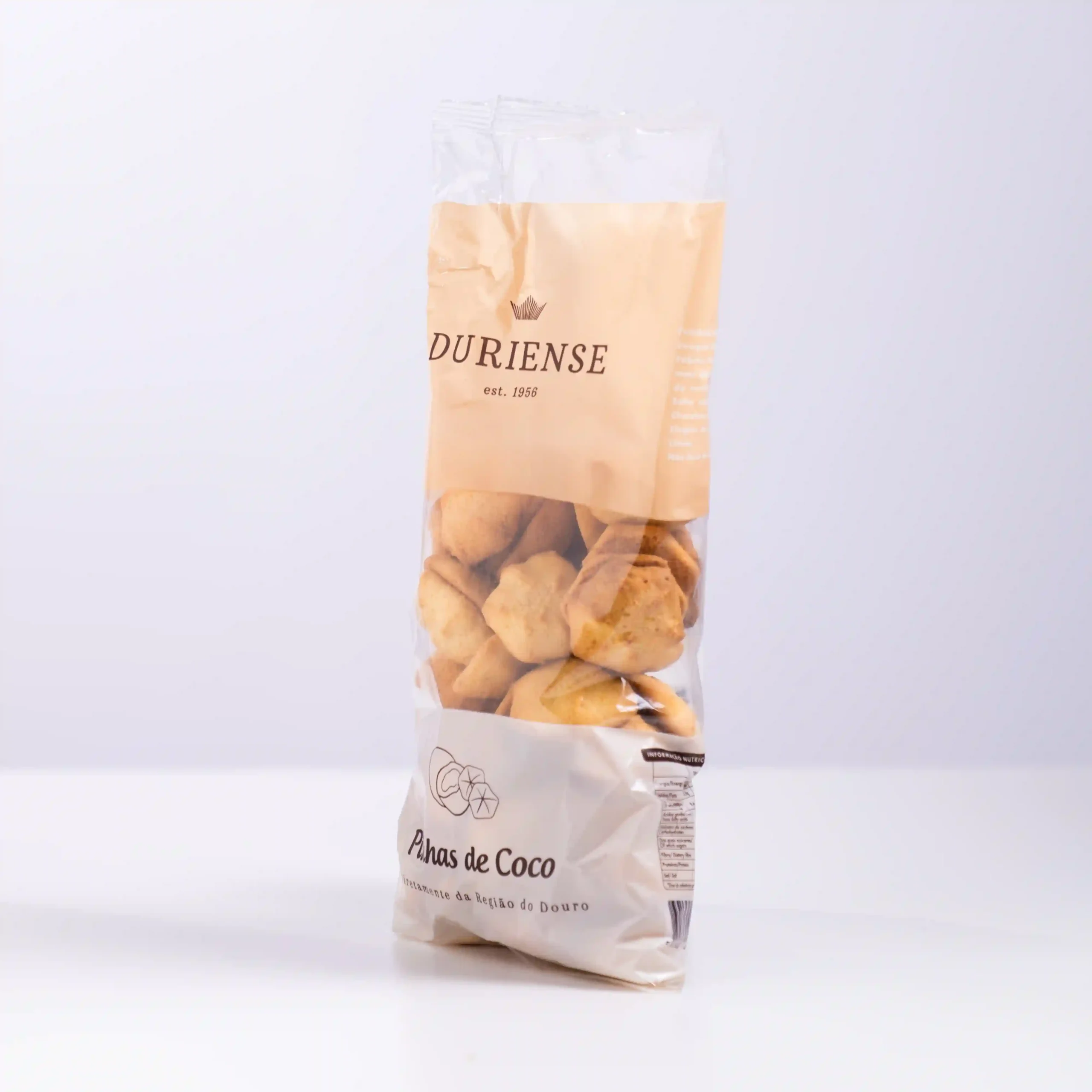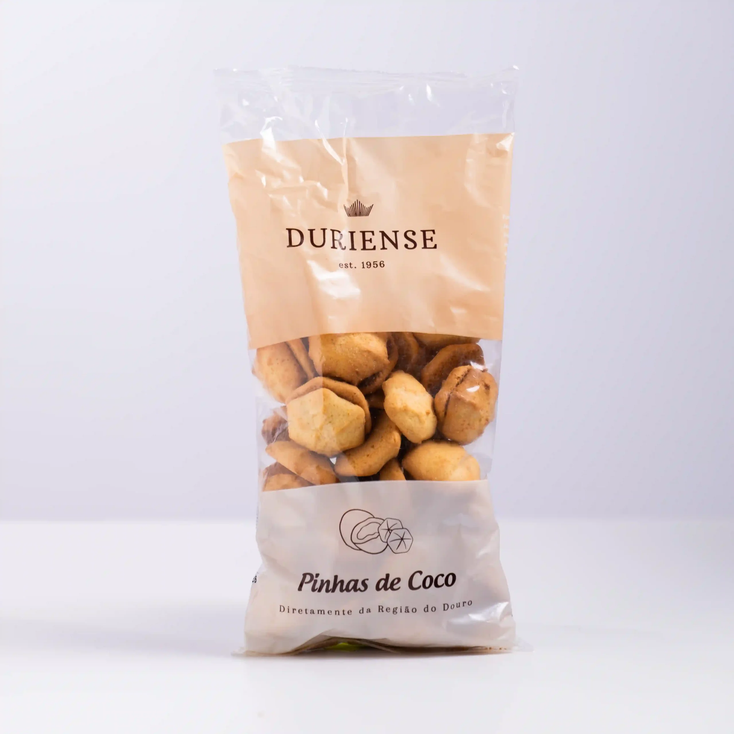 Disfruta de las «Piñas de Coco» de Duriense, una de las especialidades más famosas y apreciadas de su Gama Clásica. Estos dulces tradicionales, con su característica forma de piña, son un homenaje al sabor puro del coco. No son una galleta seca, sino un bocado de pastelería denso y jugoso, elaborado artesanalmente con coco rallado, azúcar y huevo, horneado lentamente para conseguir un exterior dorado y un interior tierno e irresistible.
