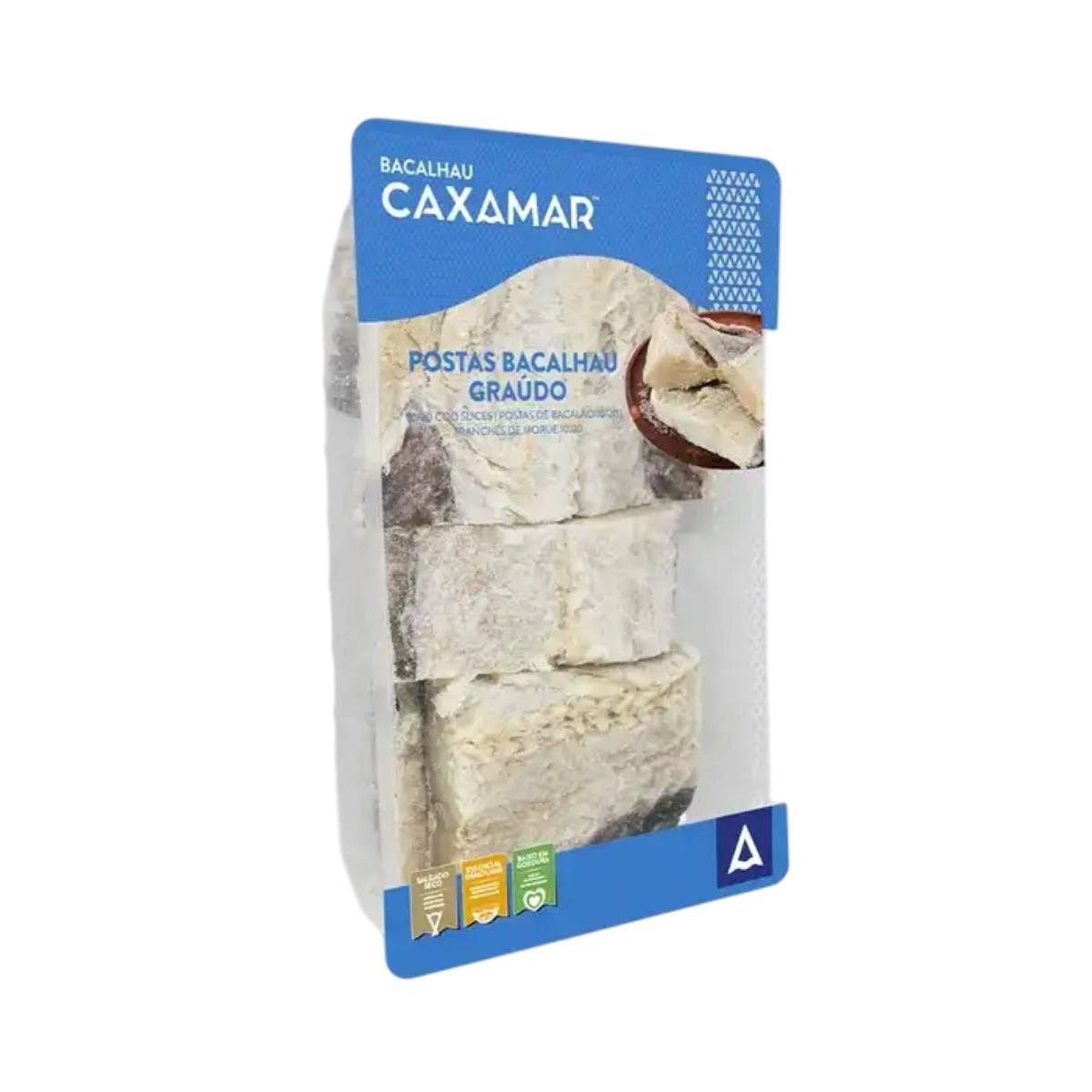 Caxamar presenta la categoría reina del fiel amigo: los Filetes de Bacalao Graúdo. Esta clasificación, «Graúdo» (Extra), se reserva para los lomos más altos y nobles, extraídos de los ejemplares más majestuosos de Gadus morhua pescados en el Atlántico Norte. Cada posta es una demostración de calidad suprema, tratada con la paciencia de la curación tradicional portuguesa. Es una pieza de altura imponente, destinada a las grandes celebraciones y a los paladares que buscan la perfección absoluta en textura y sabor.