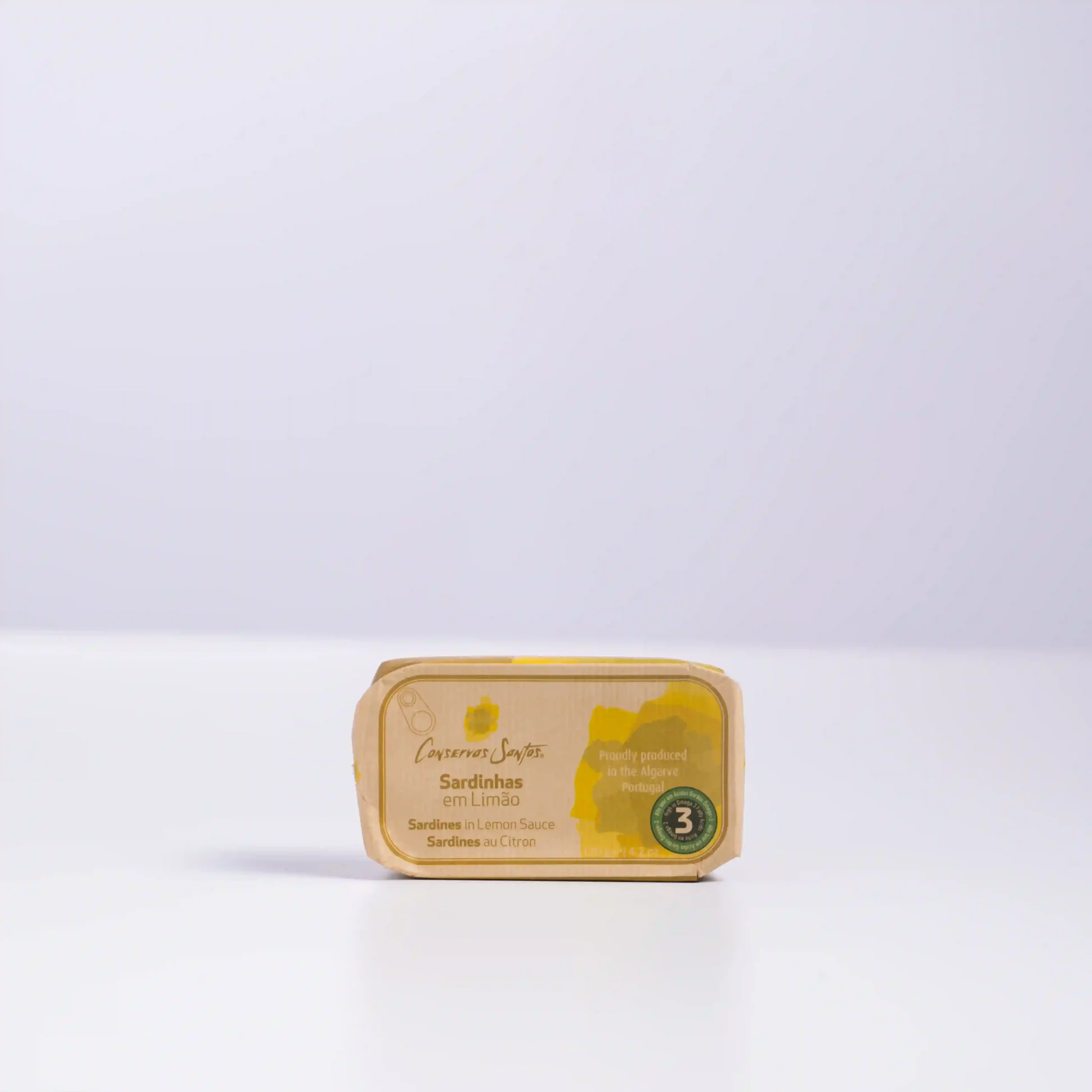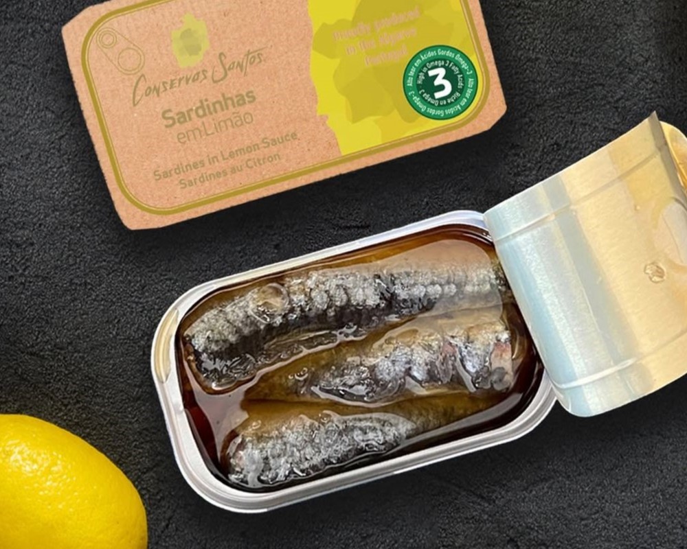 En esta lata, Campos Santos trae sardinas portuguesas seleccionadas con esmero, preparadas artesanalmente y conservadas en aceite de oliva con un toque natural de limón.