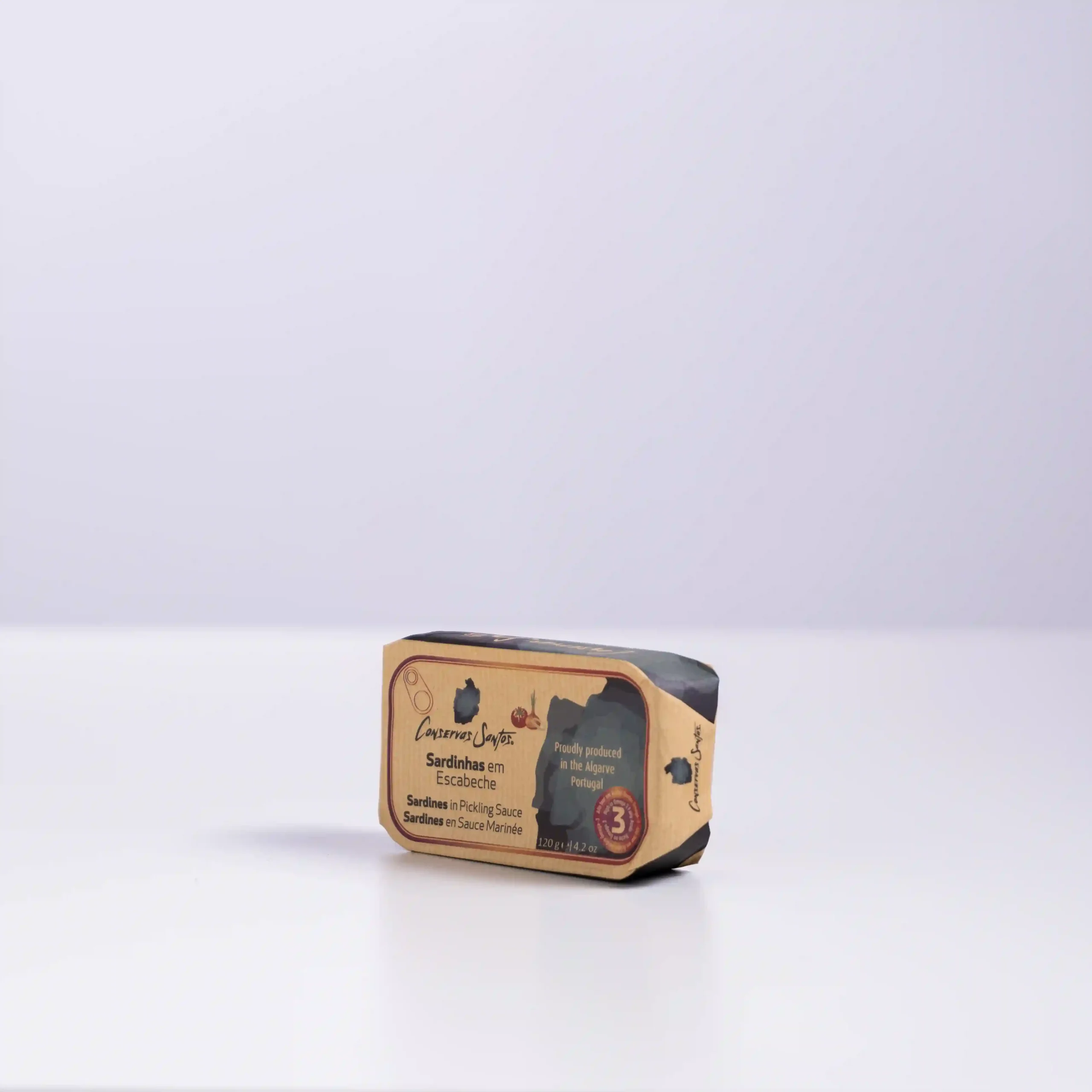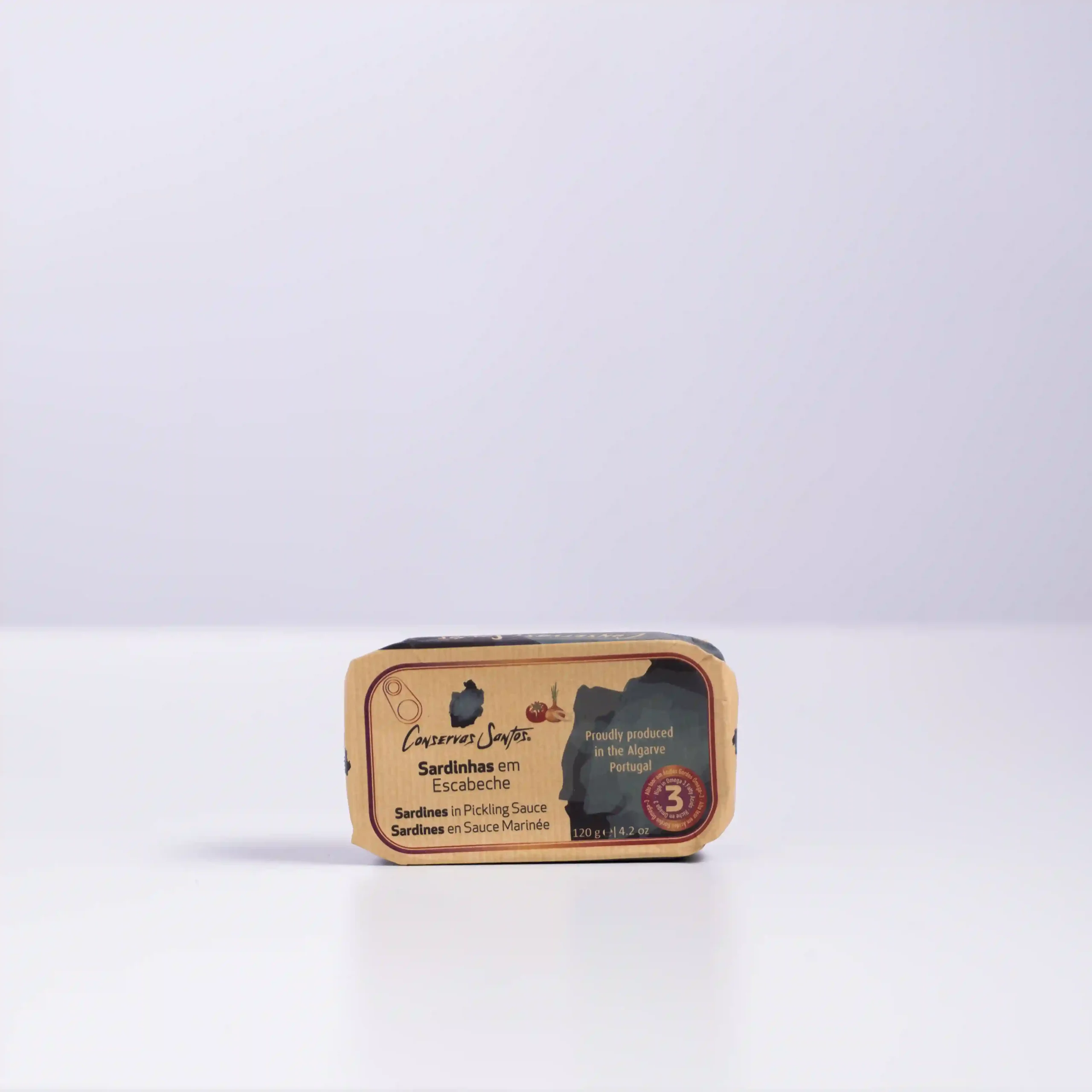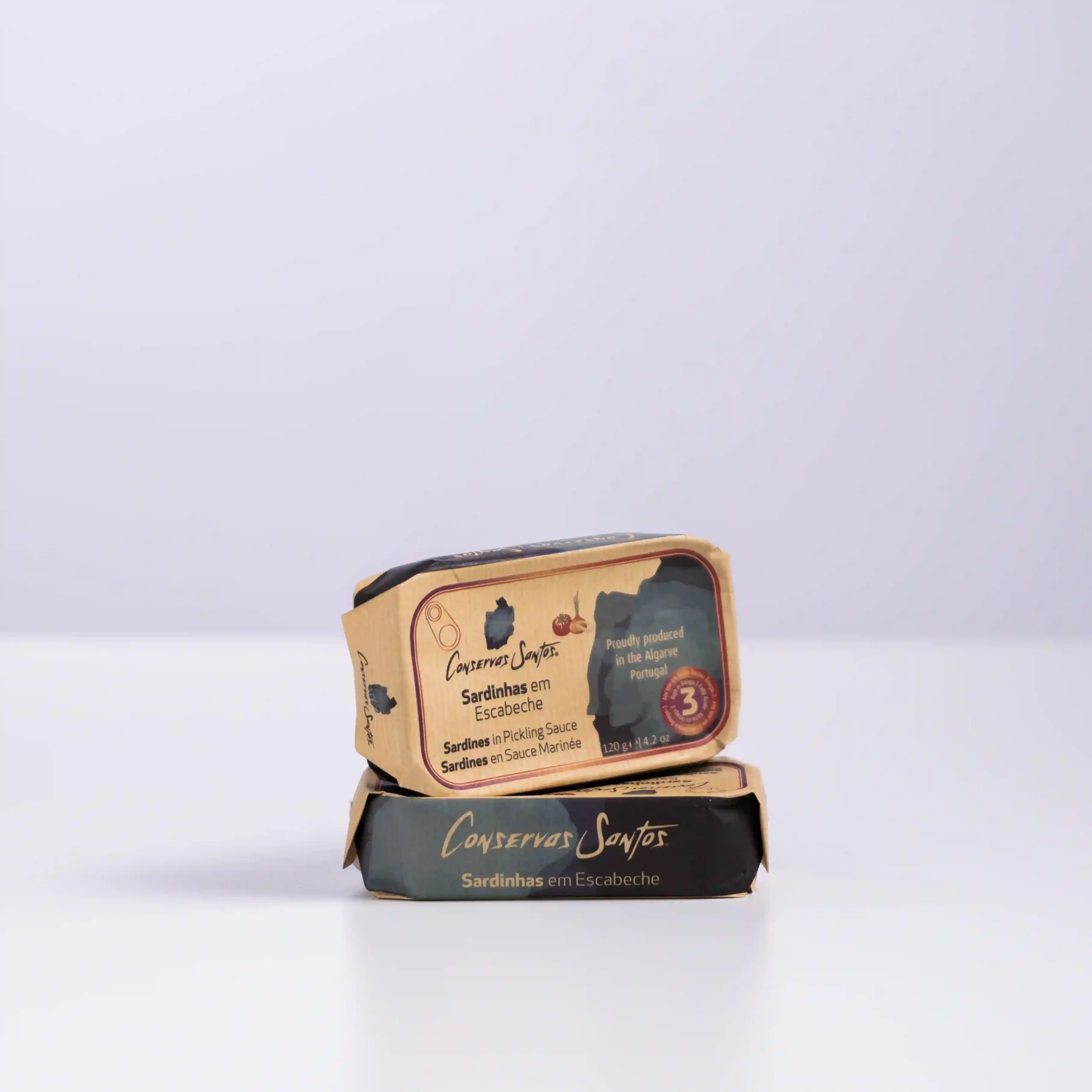 Las sardinas en escabeche de Campos Santos son una delicia tradicional portuguesa, donde las sardinas se marinan en una mezcla aromática de vinagre, aceite de oliva, cebolla, laurel y especias. Este método ancestral no solo realza su sabor, sino que también preserva su textura y frescura. El resultado es un plato equilibrado entre lo ácido y lo suave, ideal para servir frío como aperitivo o sobre una tostada crujiente.