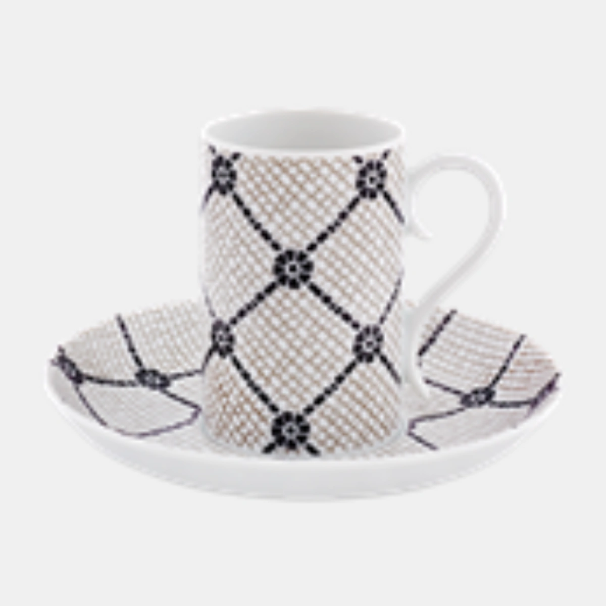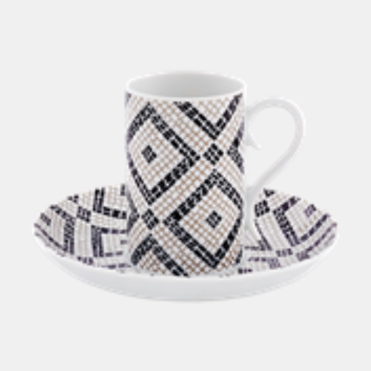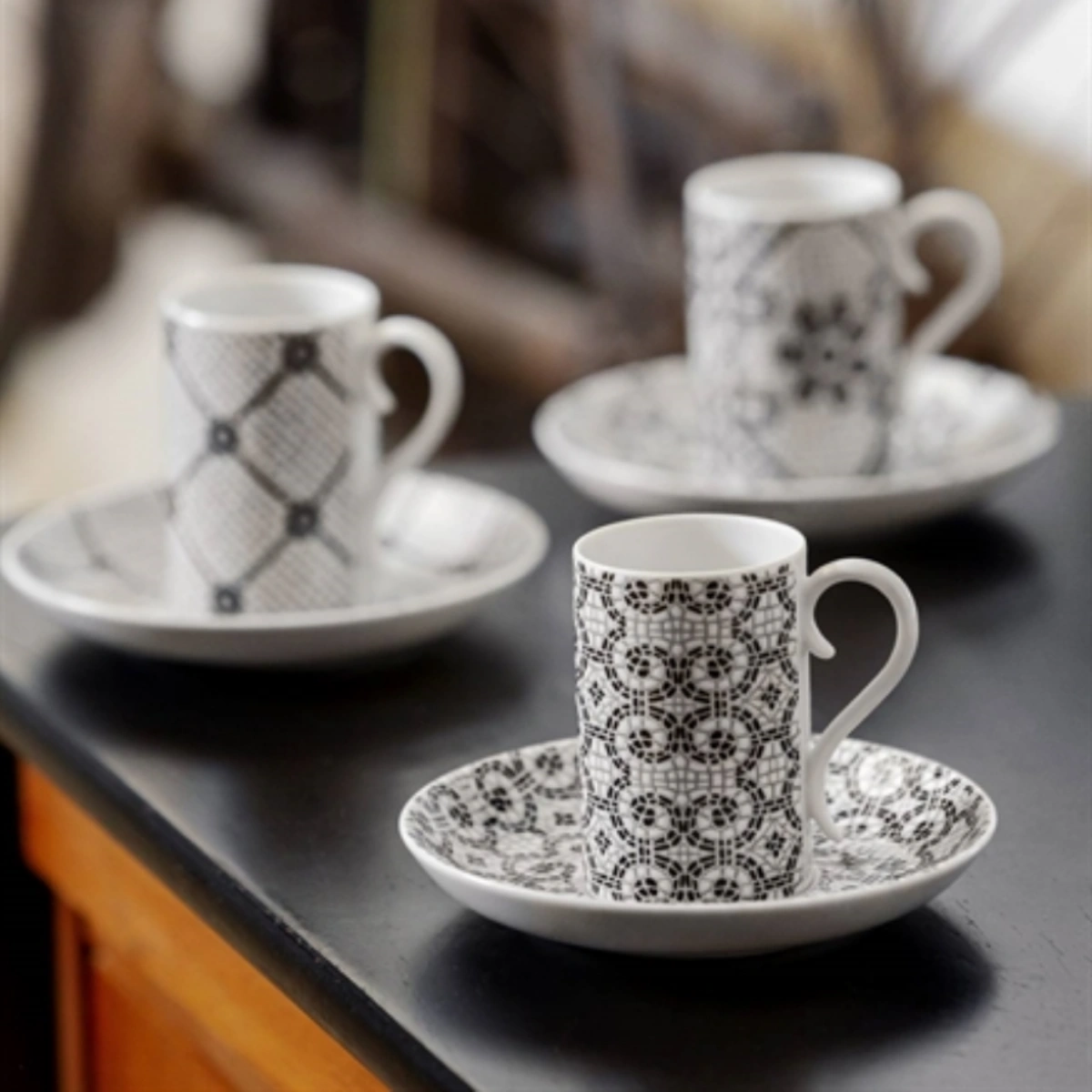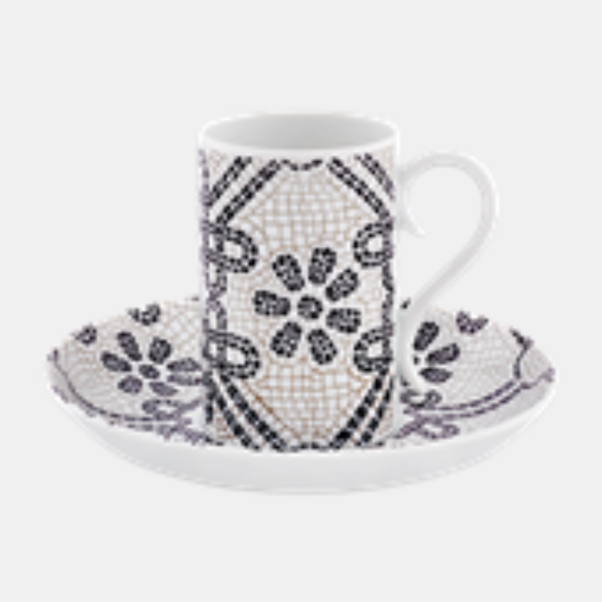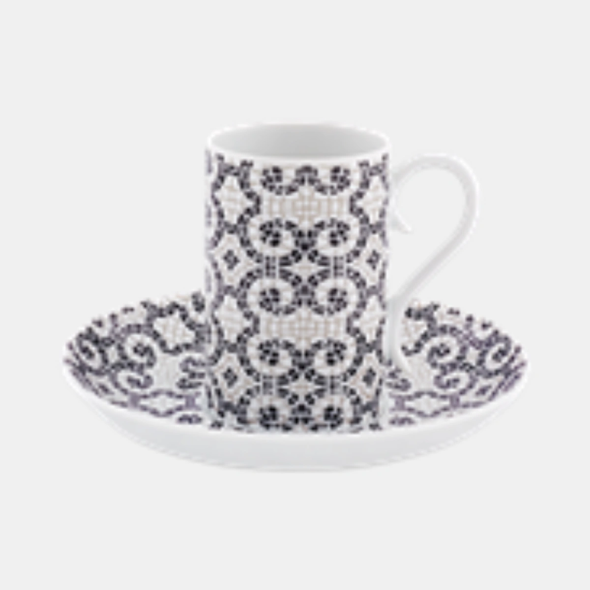 Pocos pavimentos en el mundo son tan icónicos como la Calçada Portuguesa. Vista Alegre, bajo la dirección creativa de la diseñadora Manoela Medeiros, ha trasladado la magia de los maestros empedradores (calceteiros) a la mesa. Este juego de 4 tazas de café y platillos es un tributo en blanco y negro a los patrones que alfombran las plazas del Rossio o el Chiado. Jugando con el contraste absoluto y la geometría, cada taza reproduce los ritmos visuales de la piedra basáltica y la caliza, creando un efecto óptico sofisticado y atemporal. Es la elección perfecta para quienes entienden que el café sabe mejor cuando se sirve sobre un pedazo de historia.