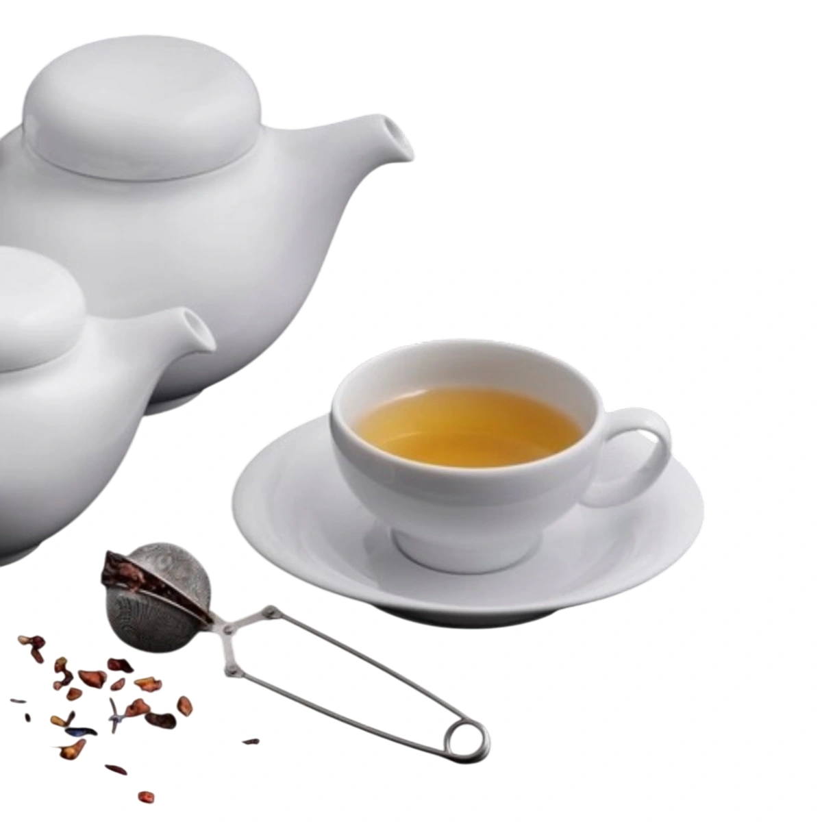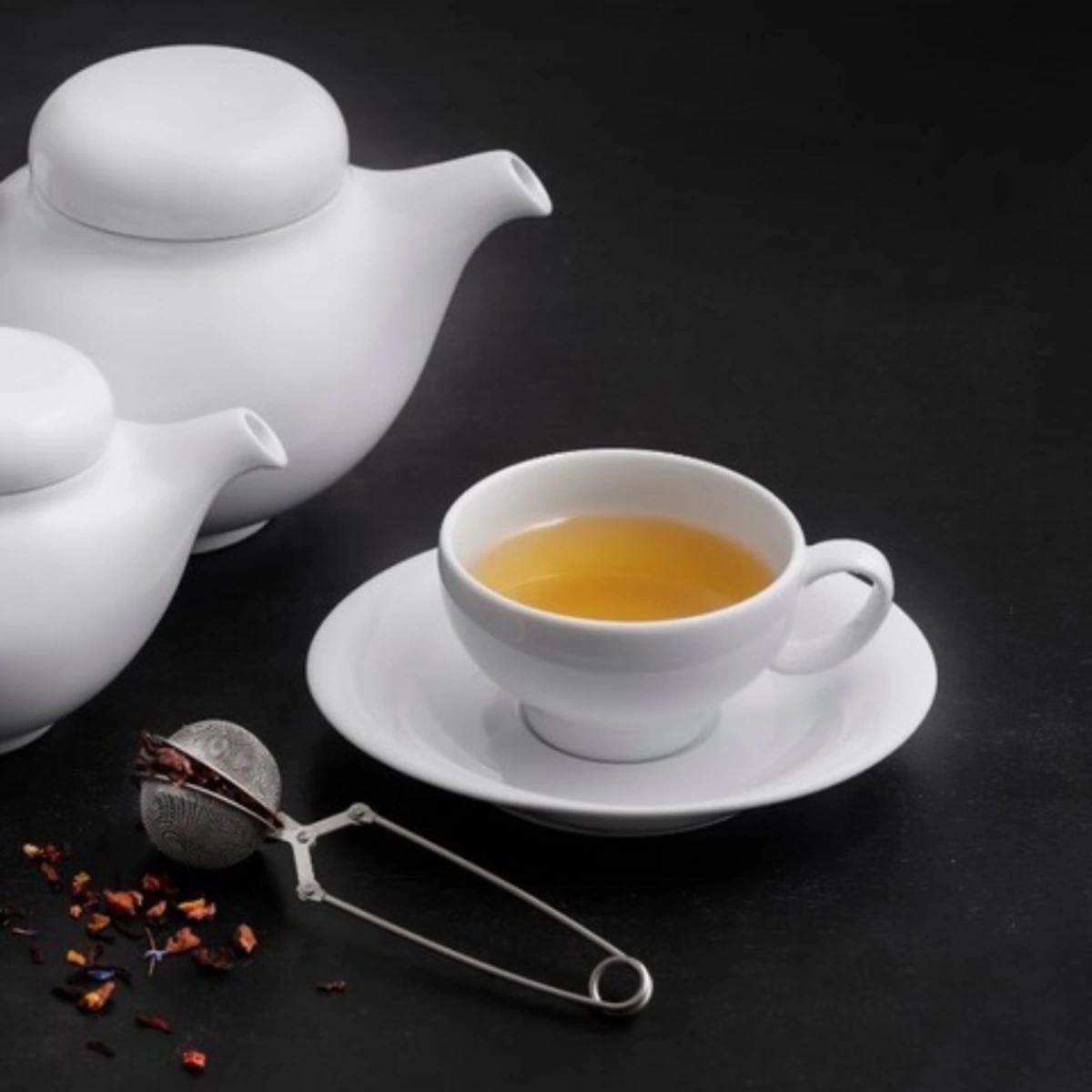 Si la cerámica rústica busca la emoción de lo imperfecto, la línea Opera de Costa Verde busca la perfección absoluta. Este set de taza y plato es la definición de elegancia atemporal. Fabricado en porcelana dura portuguesa, este conjunto destaca por una blancura inmaculada y un vidriado espejo que no envejece. Su diseño, basado en curvas suaves y armoniosas (de ahí el nombre «Opera»), prescinde de cualquier adorno superfluo para ceder todo el protagonismo a la bebida. Es la vajilla que eligen los profesionales cuando quieren que el color del té o la crema del café brillen con luz propia sobre un lienzo impoluto.