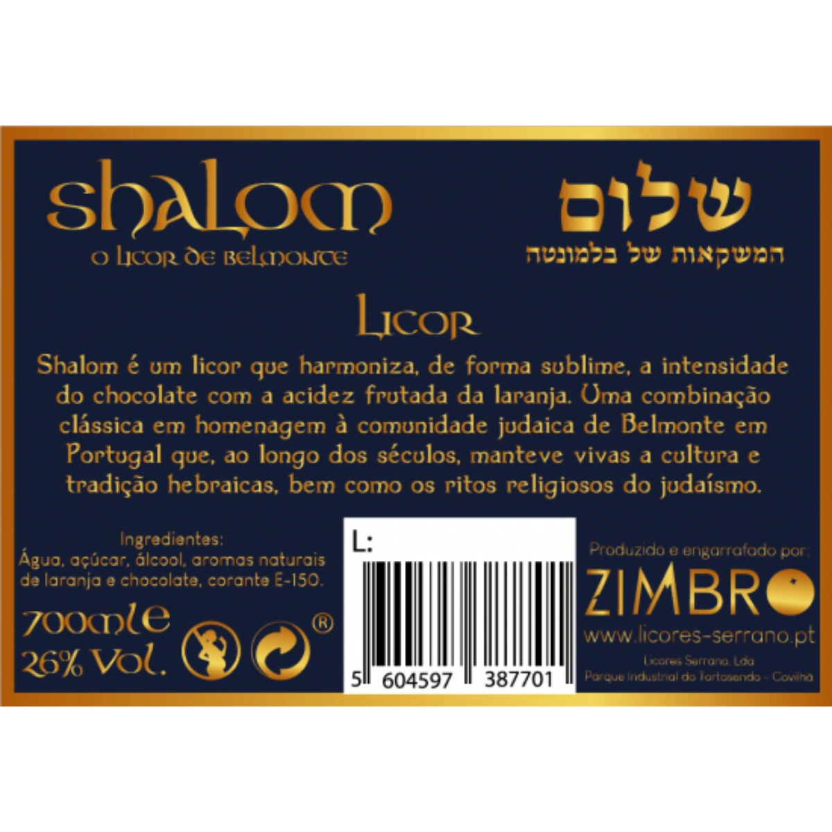 Shalom (que en hebreo significa «Paz») es más que un licor; es un tributo líquido a la resistencia y la historia de la comunidad judía de Belmonte. Esta edición especial de Zimbro armoniza de forma sublime dos mundos de sabor: la profundidad del chocolate negro y la vibrante acidez frutada de la naranja. Es una receta que simboliza la unión y la armonía, transformando esta combinación clásica de la confitería sefardí en una bebida espirituosa de graduación generosa, diseñada para celebrar la vida, la historia y la convivencia pacífica.