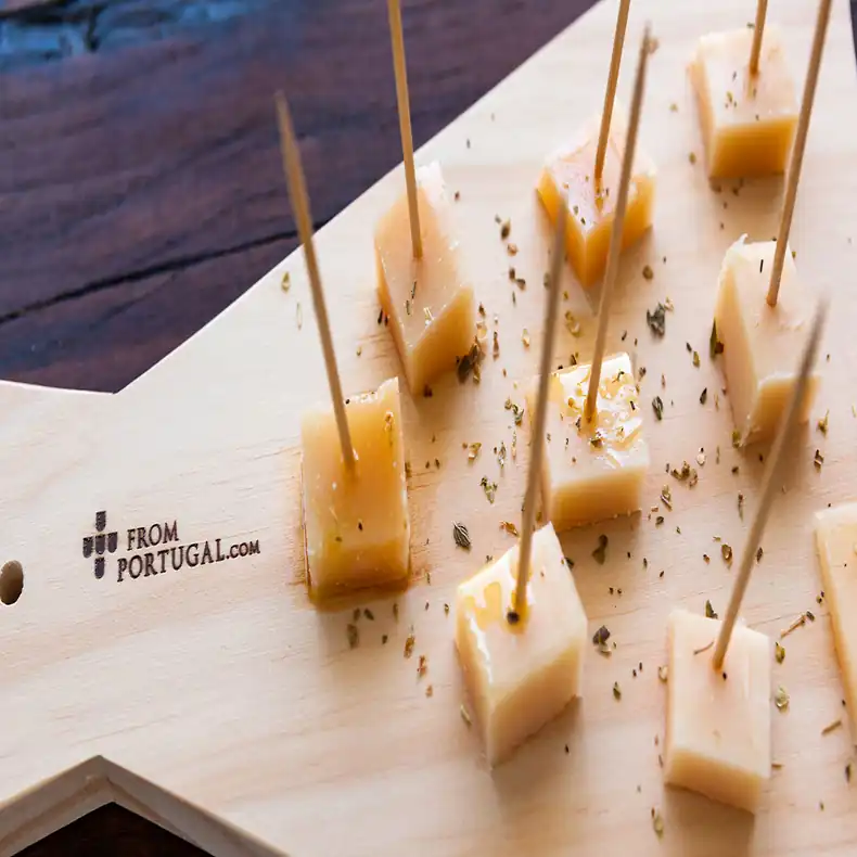 Esta tabla no es un simple utensilio de corte; es un estandarte de la gastronomía lusa. Con la forma inconfundible del «Fiel Amigo» (el bacalao seco), esta pieza de madera natural celebra la identidad de un país que mira al mar. Fabricada orgullosamente en Portugal, captura la esencia de las tabernas tradicionales y las cocinas de familia. Es la base perfecta para transformar un aperitivo sencillo en un homenaje a la tradición, recordando que en la mesa portuguesa, la sencillez y la calidad de los materiales son lo más importante.