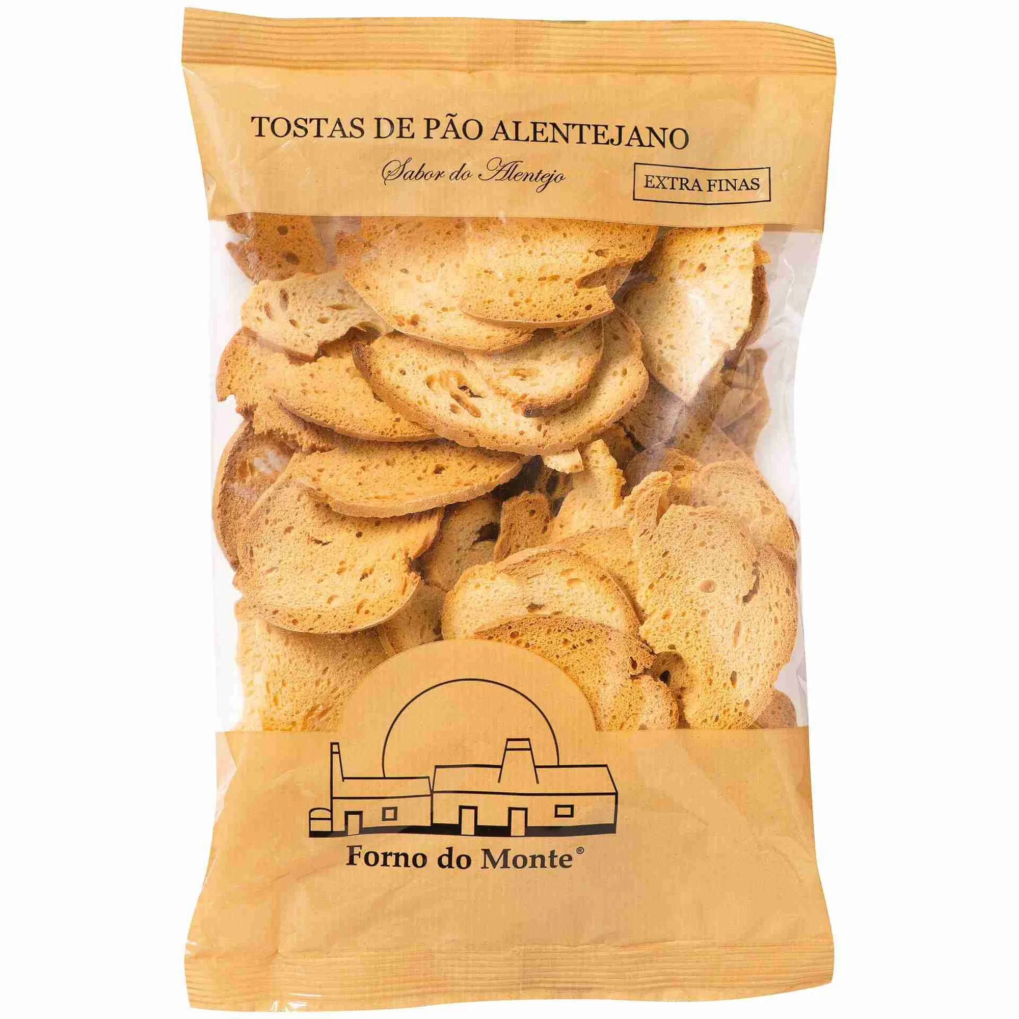 Forno do Monte encapsula la esencia dorada de las llanuras del Alentejo en estas Tostas de Pão Alentejano Extra Finas. Elaboradas a partir del icónico pan de la región —famoso por su fermentación lenta y su carácter rústico—, estas tostas son el resultado de un horneado preciso que transforma la miga densa en láminas etéreas y crujientes. Es una receta que respeta la tradición panadera del sur de Portugal, ofreciendo una base neutra pero con personalidad, diseñada para elevar cualquier aperitivo sin robarle protagonismo, llevando el «Sabor do Alentejo» a la mesa más exigente.